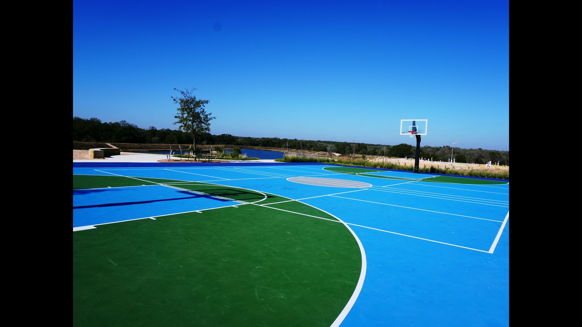 - Soccer field, pickleball courts, and basketball courts